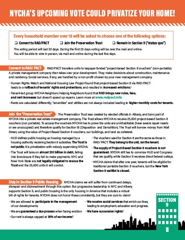 We need every neighbor who can help fight NYCHA’s misinformation and protect our homes. Find out how to get involved below.